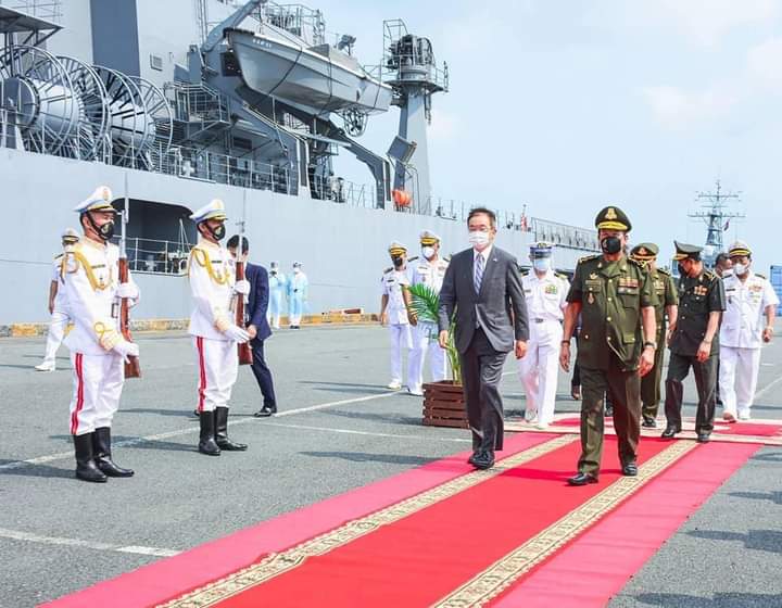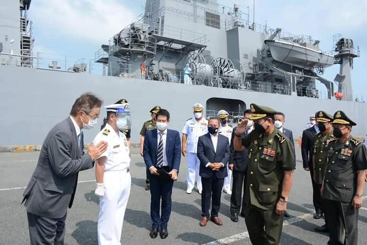 យ៉ាងកក់ក្តៅបំផុតចំពោះវត្តមាននាវាស្វ័យការពារជើងទឹកជប៉ុន និងនាវិក នៅកំពង់ផែ ខេត្តព្រះសីហនុ នៅនឹងកំពង់ផែដោយផ្ទាល់តែម្តង។