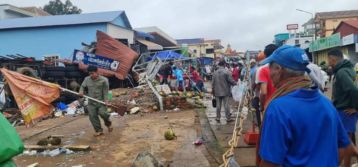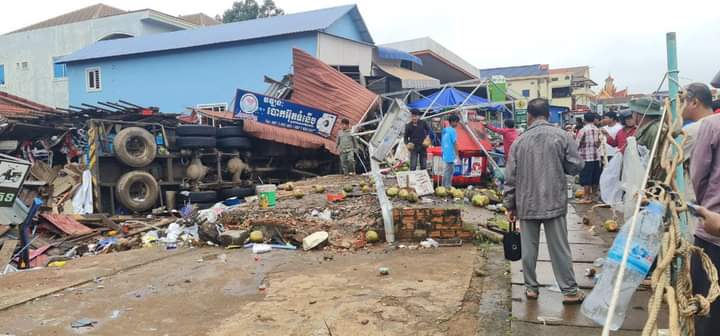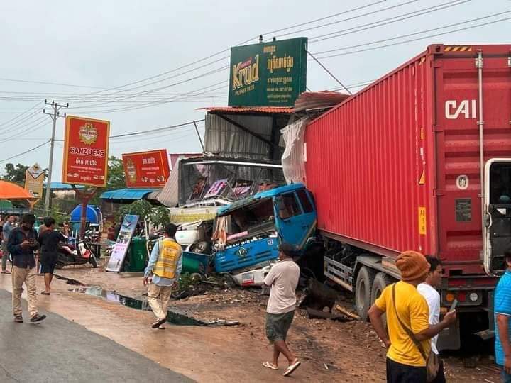 ខេត្តមណ្ឌលគិរី ៖ មនុស្សចំនួនប្រាំមួយនាក់បានរងរបួសធ្ងន់ស្រាល ក្នុងហេតុការរថយន្តដឹកស៊ីទែនហ្គាសខ្នាតធំមួយគ្រឿង បើកលឿនចុះចំណោតផ្លូវកែងជ្រុលចង្កូត បុករះតូបអ្នកលក់ដូរតាមដងផ្លូវជាតិលេខ៧៦អស់ចំនួនបីខ្នង នៅវេលាម៉ោង ២២និង១៥នាទី ថ្ងៃទី០៧ខែសីហា ឆ្នាំ២០២២ នៅចំណុចផ្ទះតាលី ស្ថិតភូមិចំបក់ សង្កាត់ស្ពានមានជ័យ ក្រុងសែនមនោរម្យ ខេត្តមណ្ឌលគិរី ។