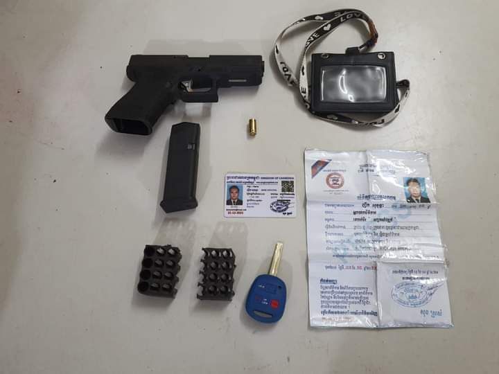 -រថយន្តម៉ាកកាមរីបាឡែនពណ៌ទឹកប្រាក់ ឆ្នាំ២០០៣ពាក់ផ្លាកលេខភ្នំពេញ 2BC-4568ត្រូវចំទ្វាមុខ ខាងស្ដាំ ០១គ្រាប់។