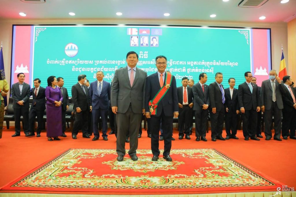 គ្រឿងឥស្សរិយយស និងប័ណ្ណសរសើរ ត្រូវបានបំពាក់និងប្រគល់ជូនថ្នាក់ដឹកនាំ មន្ត្រីរាជការ និងមន្ត្រីឧទ្យានុរក្ស នៃក្រសួងបរិស្ថាន ដែលមានស្នាដៃក្នុងការបំពេញការងារសម្រាប់ឆ្នាំ២០២១ និង២០២២ ក្រោមអធិបតីភាពឯកឧត្តម សាយ សំអាល់ រដ្ឋមន្ត្រីក្រសួងបរិស្ថាន និងមានការអញ្ជើញចូលរួមពីឯកឧត្តម លោកជំទាវ លោក លោកស្រីជាថ្នាក់ដឹកនាំក្រសួង ព្រមទាំងមន្ត្រីរាជការក្រោមឱវាទ ជាង៥០០នាក់ នៅព្រឹកថ្ងៃទី៣០ ខែតុលា ឆ្នាំ២០២២ នាទីស្តីការក្រសួងបរិស្ថាន។