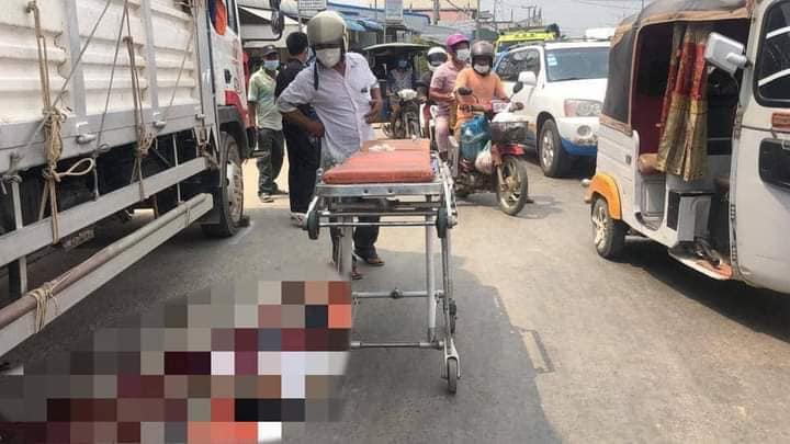រថយន្តដឹកទំនិញធុនធំបើកបុករះបន្តកន្ទុយគ្នាហើយជ្រុលទៅបុកម៉ូតូពីក្រោយនិងកិនអូសជិត១០ម៉ែត្រ បណ្ដាលឲ្យបុរសម្នាក់ស្លាប់